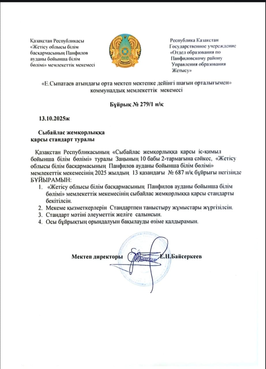 Сыбайлас жемқорлыққа қарсы стандарт » Е.Сыпатаев атындағы орта мектебі