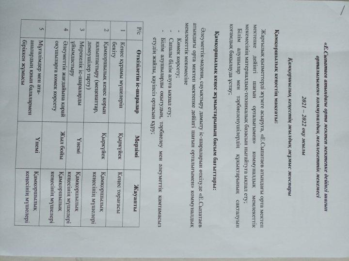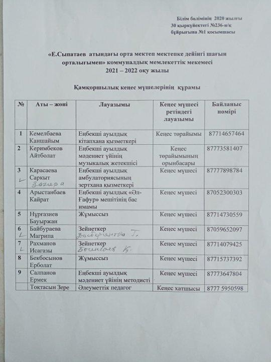 Қамқоршылық кеңесі бұйрық, хаттама, жылдық жоспары 2021-2022 оқу жылы » Е.Сыпатаев атындағы орта мектебі